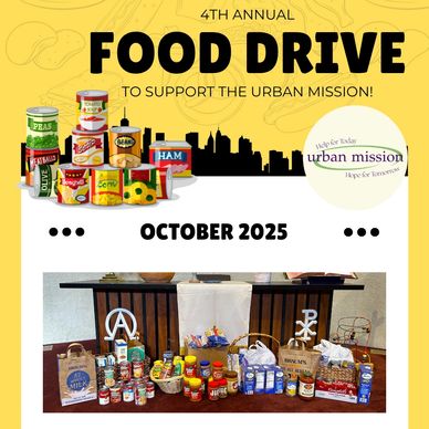 Starting in 2022 we host an annual food drive in October to support The Urban Mission. As the cost of food and the number of people needing assistance increase, so also does our call to give.