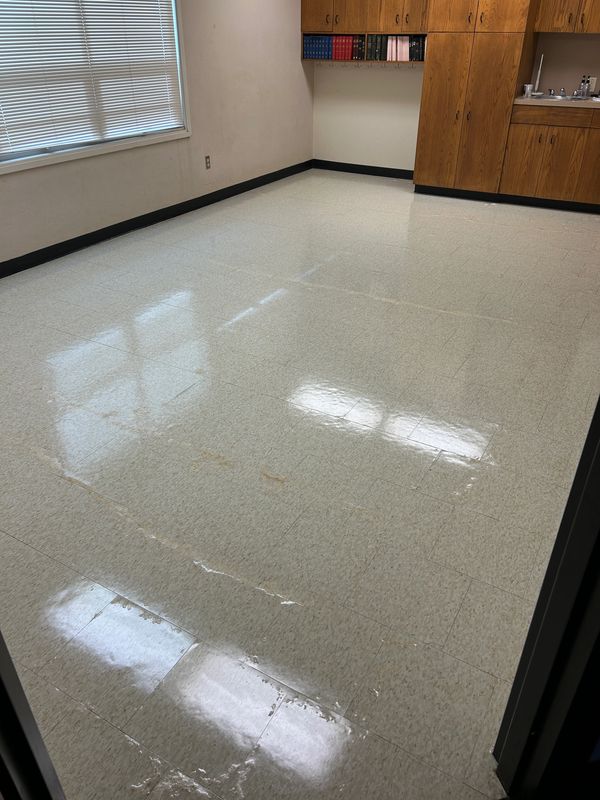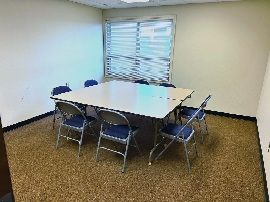 The space is approximately 13 x 19 feet. The space can be left open or set up with tables and chairs for 10 people. The room also has 4' x 8' dry erase board.